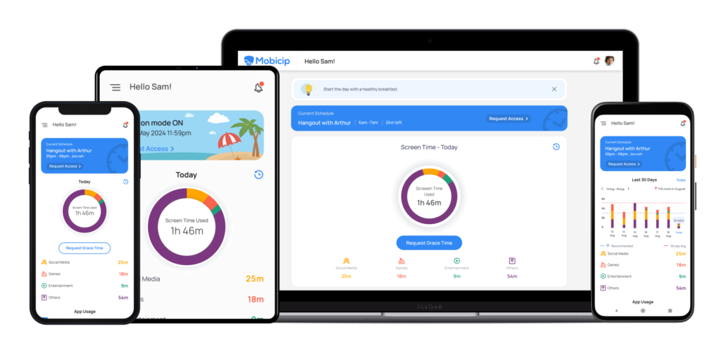 - Younger Kids: Family Link sets daily screen limits and enforces device bedtime, while Mobicip filters inappropriate websites and videos.